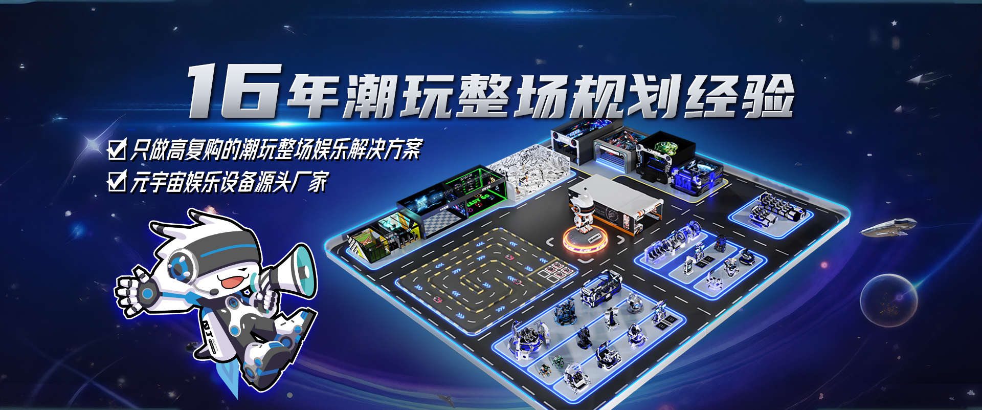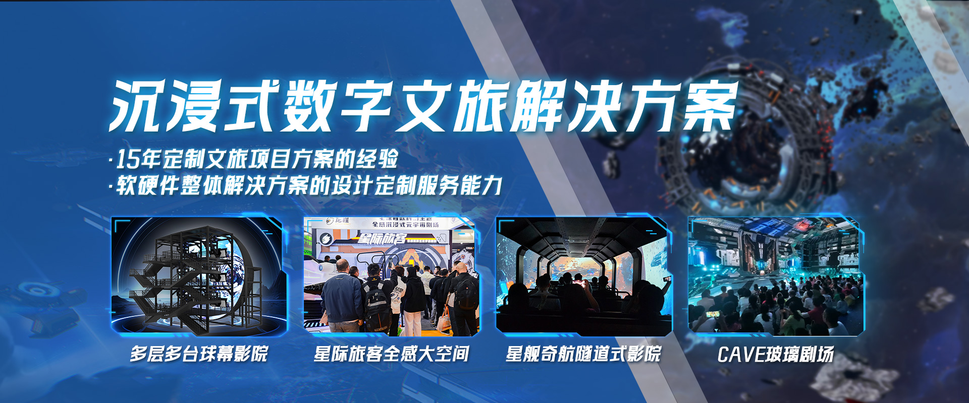 《星際旅客》全感沉浸式元宇宙劇場(chǎng)是龍程VR自主研發(fā)的全新主題大空間項(xiàng)目。項(xiàng)目從策劃設(shè)計(jì),內(nèi)容制作,動(dòng)感平臺(tái)生產(chǎn)及中控系統(tǒng),全部由我們公司自己打造,深度融合我們公...