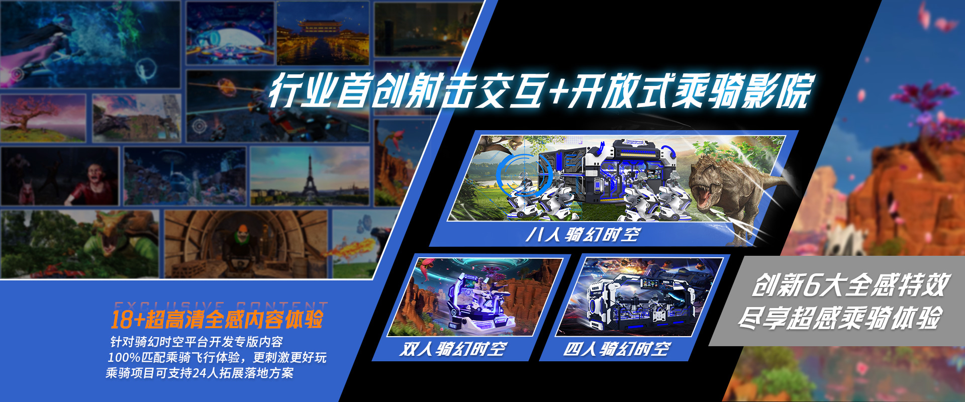 騎幻時(shí)空8人,是2024年全新推出的VR娛樂(lè)設(shè)備,行業(yè)首次將互動(dòng)射擊和全感特效結(jié)合起來(lái)的乘騎體驗(yàn)。豐富的全感特效加上公司自主研發(fā)的新型機(jī)構(gòu),沉浸的視覺(jué)與800m...